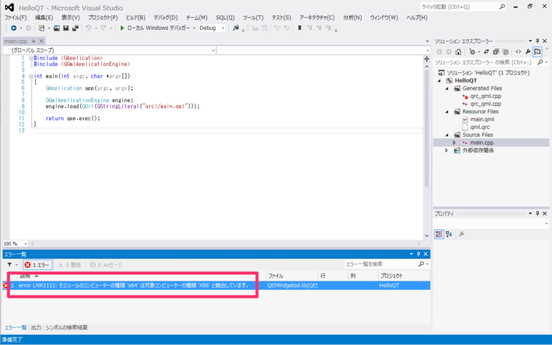 エラー 1 error LNK1112: モジュールのコンピューターの種類 'x64' は対象コンピューターの種類 'X86' と競合しています。